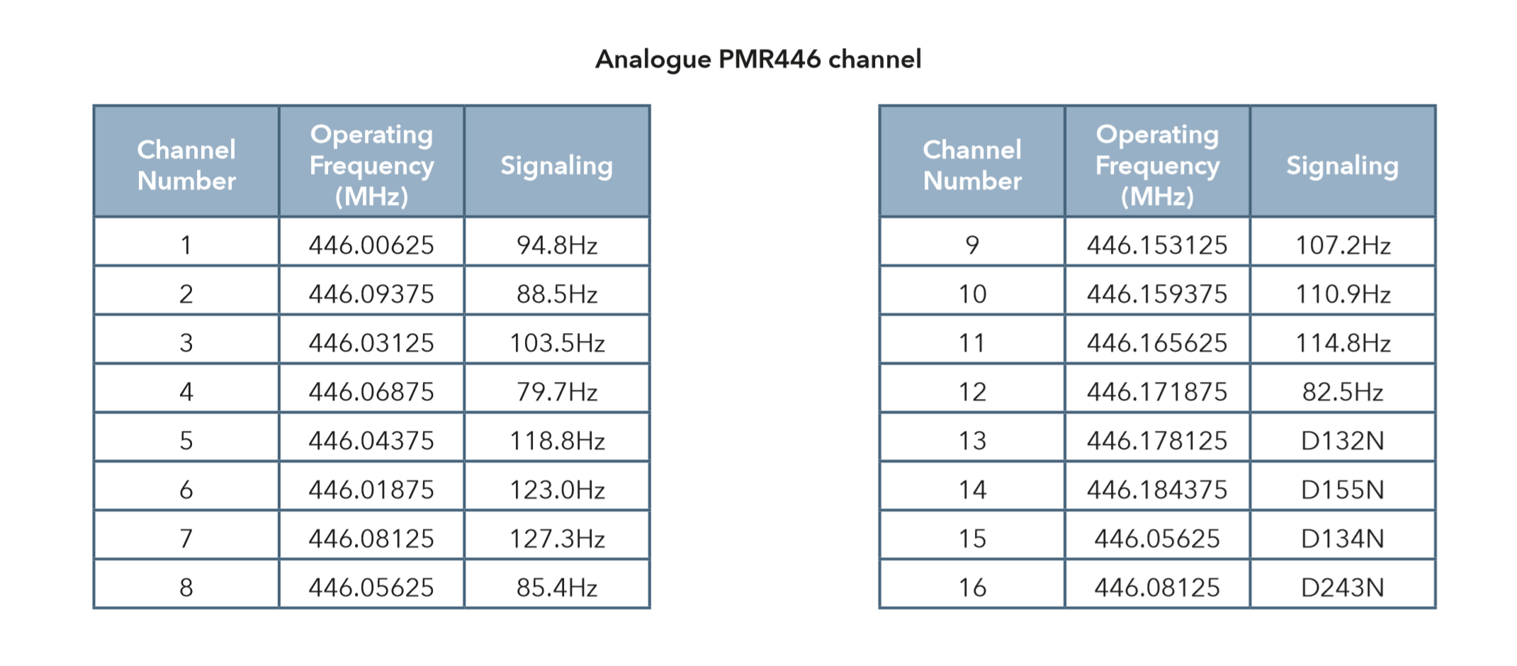 - 16 Channels pre-programmed with the 8 PMR446 Frequencies