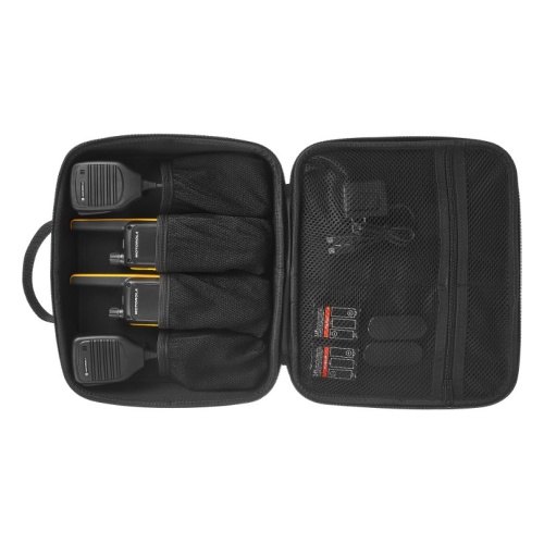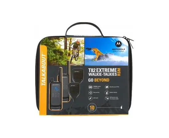 - Includes: Two radios, belt clip, battery, charger, earpiece (Extreme version only).