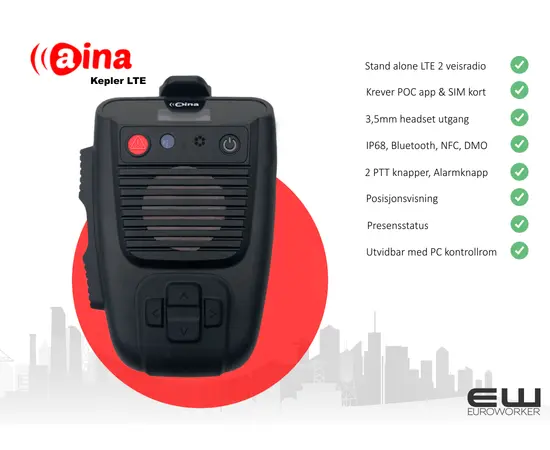 Aina PTT - Kepler Rugged Vanntett POC radio (PTT, POC)