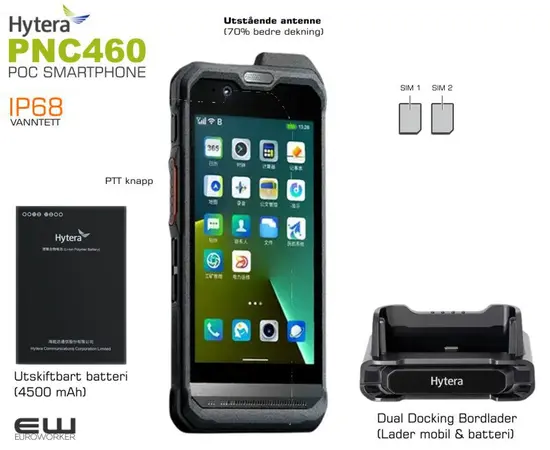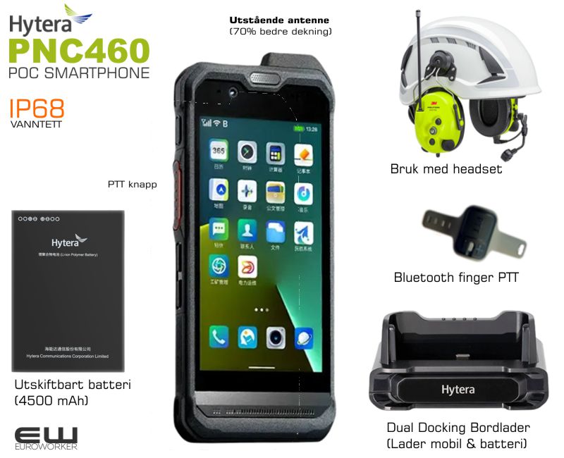 PNC460 fra Hytera er en banebrytende smartenhet som kombinerer funksjonaliteten til en smarttelefon med robustheten til en profesjonell radio. Den er perfekt for brukere i krevende arbeidsmiljøer som trenger pålitelig og effektiv kommunikasjon.