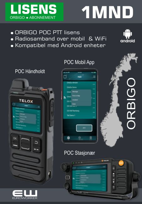 - Ved kjøp av Orbigo app med Telox MT100 POC radio er oppstartsavgiften kr 0.-