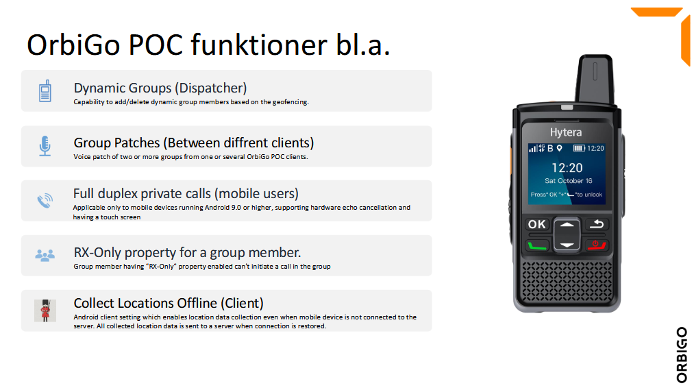 - Orbigo er en nordisk POC tjeneste som gir radiosamband over mobil og WiFi.