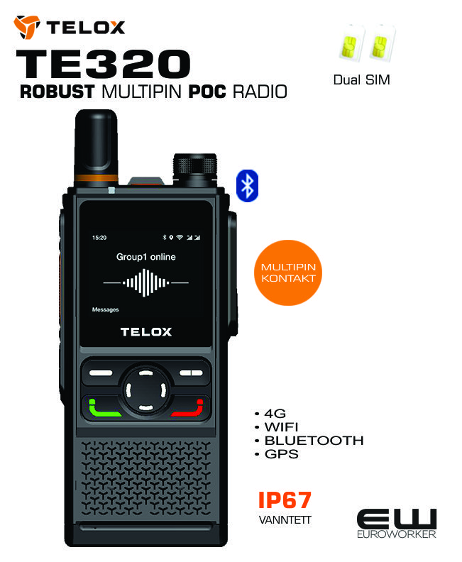Telox TE320 er en profesjonell PoC-radio (Push-to-Talk over Cellular) designet for å sikre klar og effektiv kommunikasjon i krevende miljøer. Enten du jobber innen bygg og anlegg, transport, eller andre bransjer der pålitelig kommunikasjon er avgjørende, er TE320 et utmerket valg.