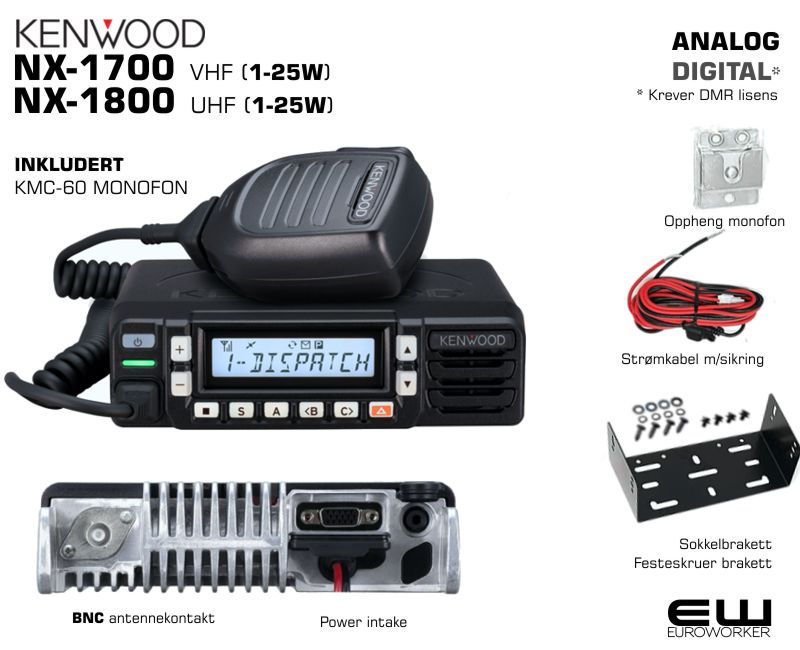 - ANALOG/DMR DIGITAL: NX-1700AE VHF FM Analogue Mobile radio 136 - 174 MHz 25W