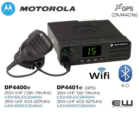 - DM4401e har GPS mottaker, Bluetooth (4.0 + EDR, Headset Profile, SPP & Motorola Fast PTT), WiFi