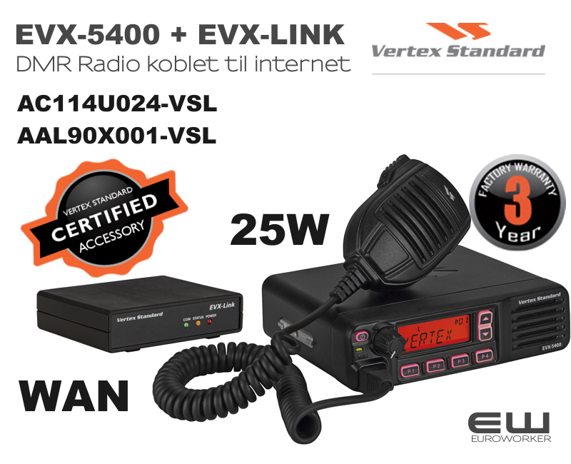- VHF EVX-5400, 134-174 MHz, 1-25 W (AC114N024-VSL)