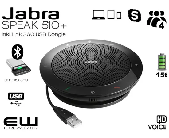 Jabra Speak 510+ Speakerphone (USB & Bluetooth + USB Bluetooth Dongle)