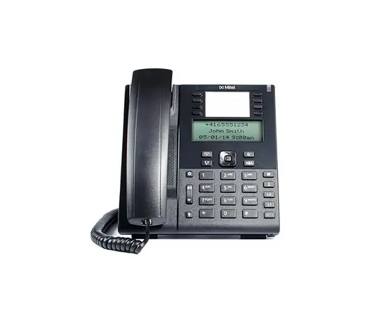 - SIP telefonMitel 6865 SIP leveres med 8 programmerbare taster, XML muligheter, original DHSG/EHS hodesettstøtte og monokrom LCD-display.