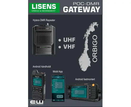 - Denne lisensen linker Orbigo POC samband via Hytera repeater til DMR UHF eller VHF samband.