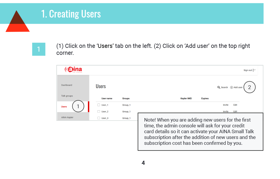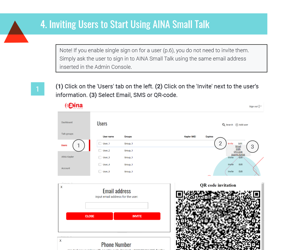 - Webbasert styringsverktøy som leveres gratis sammen med Aina Small Talk Push to Talk App abonnement.