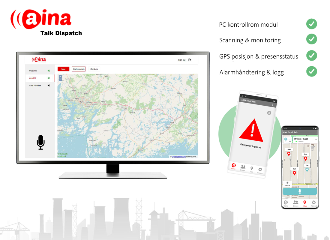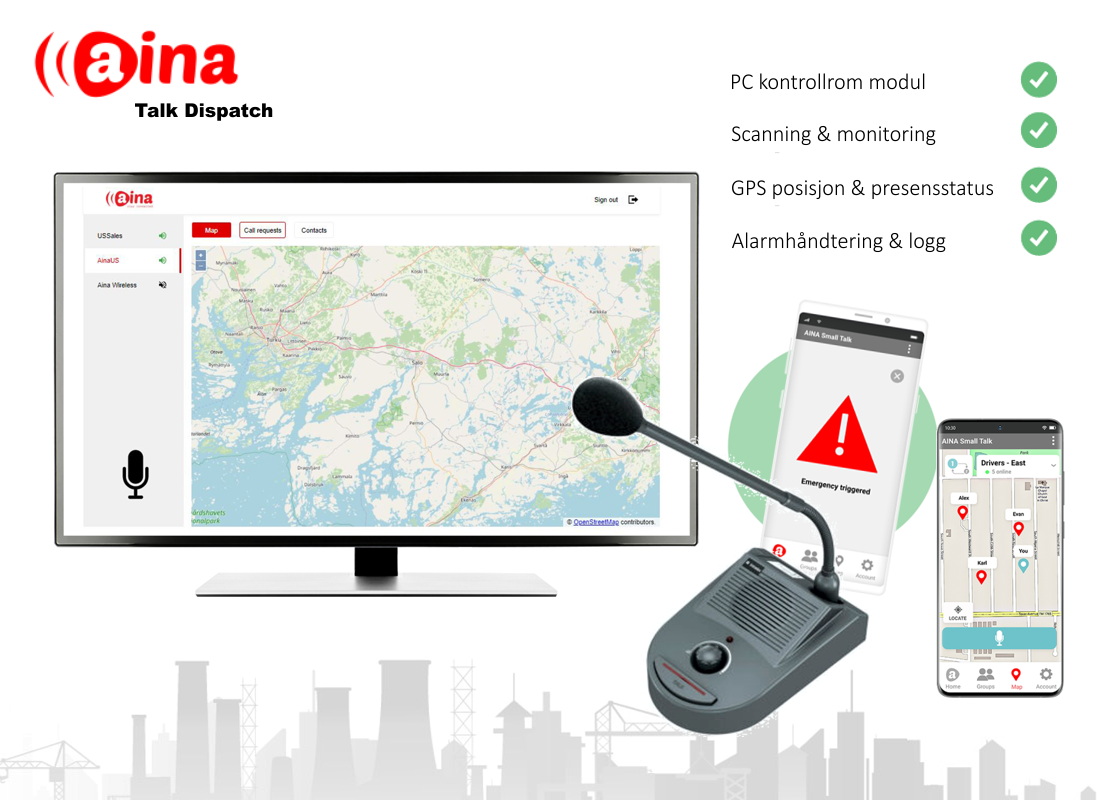 - Call requets - users can send the dispatcher call requests from their AINA Small Talk mobile app.