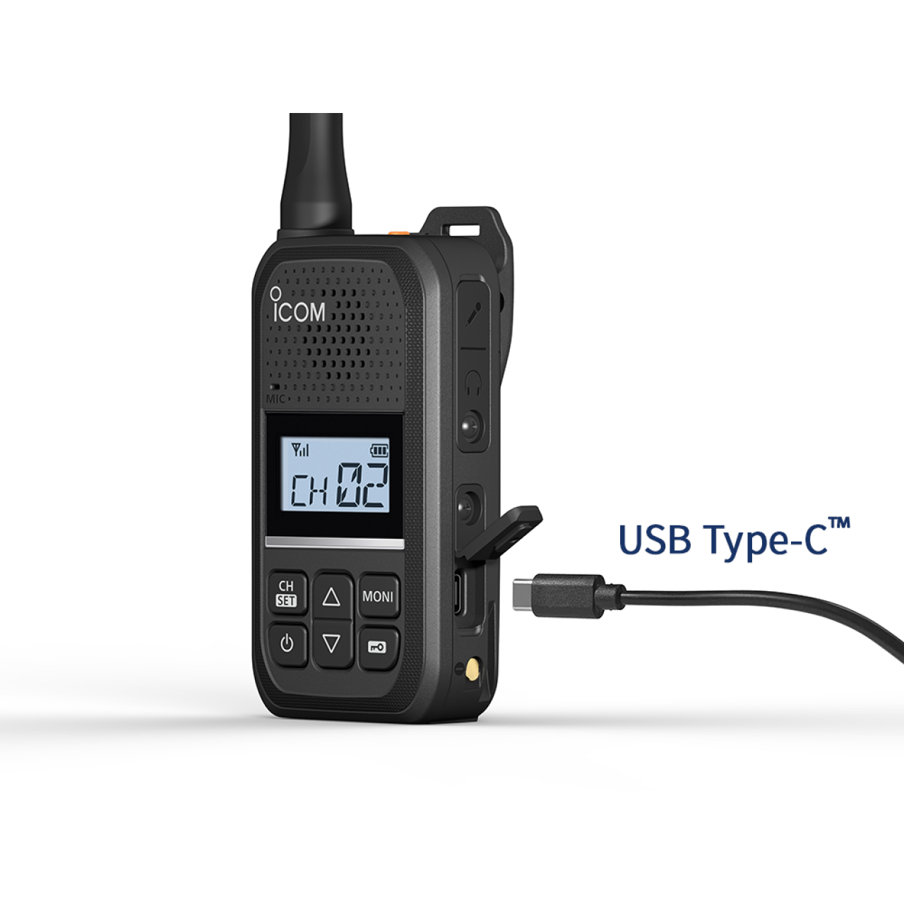 The second is a side button that allows the Call-Ring function to make group calls by ringing other Icom portables. Smart-ring function is also available which checks whether a group member is in range or not.