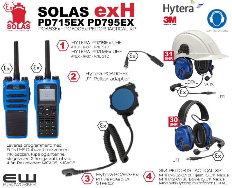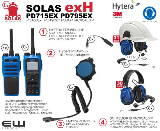 Hytera SOLAS Atex Kampanje - PD715/PD795Ex med POA63Ex - POA90Ex og Peltor IS Tactical XP Headset