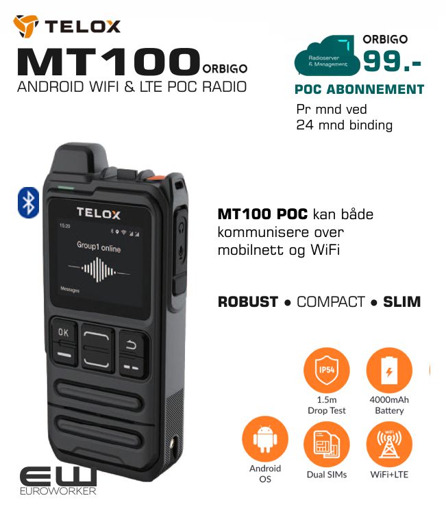 - Telox M100 er en kompakt robust og diskrét calling (les: håndholdt radio)