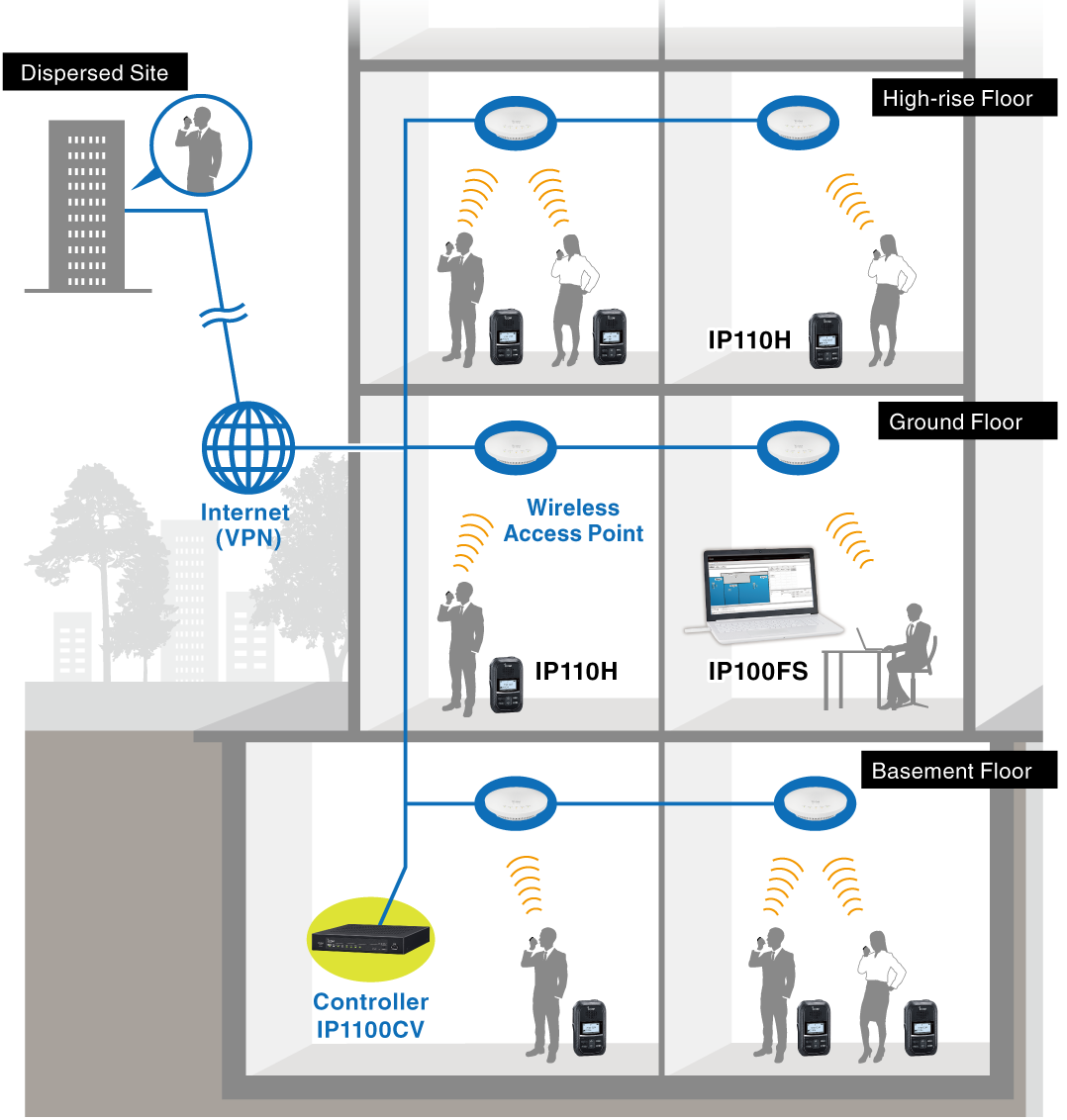 - The IP1100CV can be registered up to 300 units WLAN radios (including IP100FS terminals).