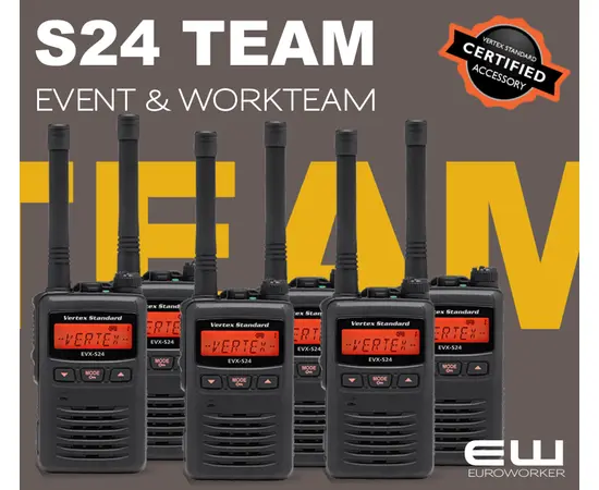6 stk Vertex Standard S24 lisensierte UHF radioer (inkl batteri, antenne, belteklips)