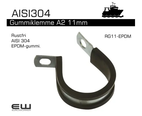 10 stk AISI304 - Gummiklemme A2 11mm (EPDM)