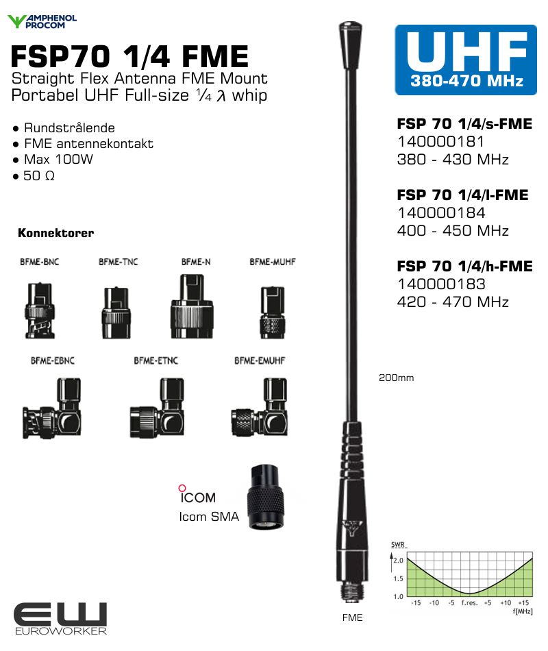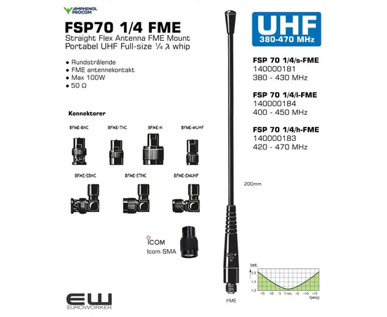 Procom FSP70 ¼ FME Portabel UHF Full-size ¼ λ whip (FME)