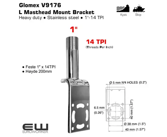 Glomex V9176 L Masthead Mount Bracket 1"-14TPI