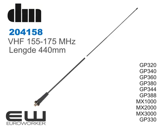 Lang VHF antenne til Motorola GP344 (155-175 MHz) 204158