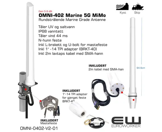OMNI-402 Marine 5G MiMo - Rundstrålende Marine Grade Antenne