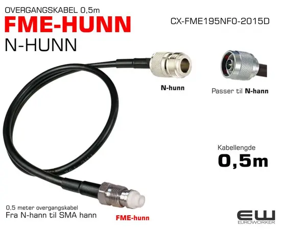- Overgangskabel fra N-hann til FME-hunn