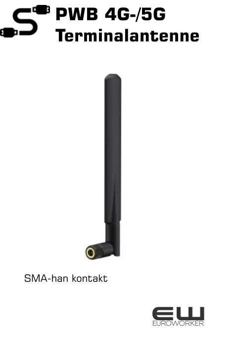 Antenne for rutere og andre terminaler som dekker 2G-, 3G-, 4G og 5G-båndene. PWB har et ledd i nedre enden og kan dermed vinkles i ønsket retning.