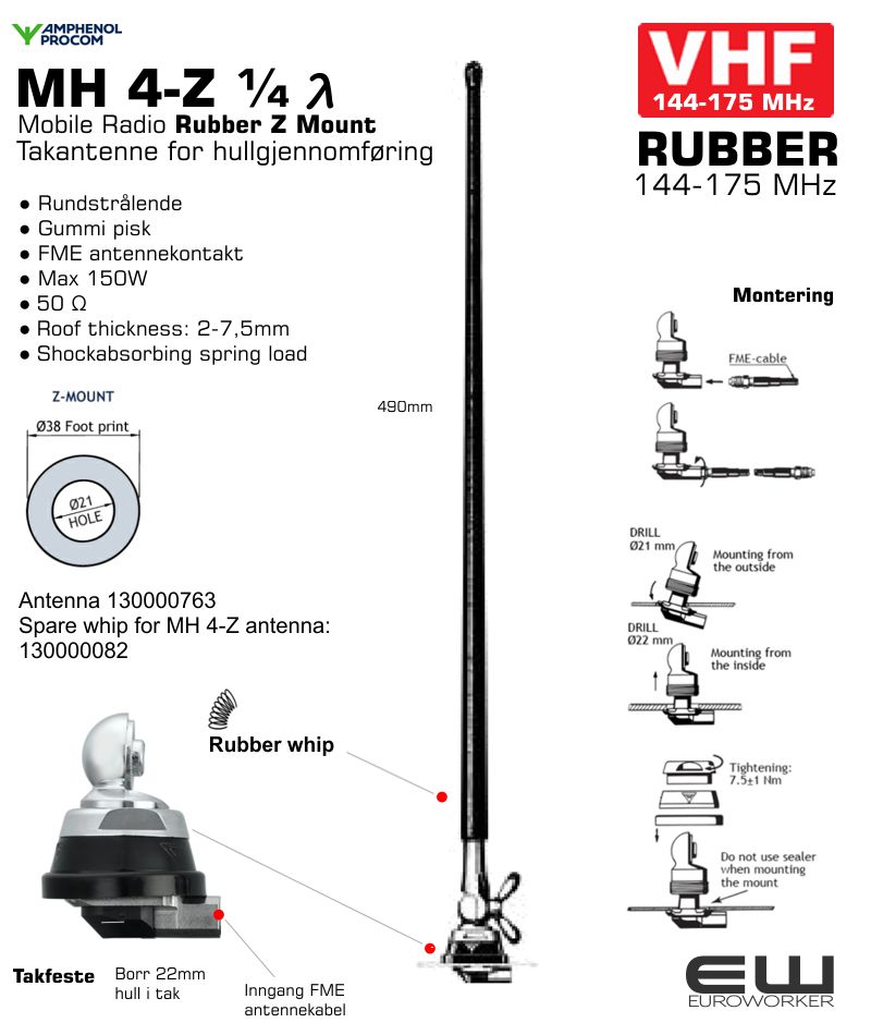 Procom MH 4-Z ¼ λ Rubber VHF Antenna (144-175MHz) 130000763