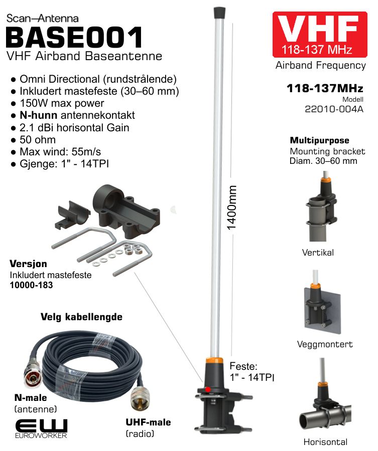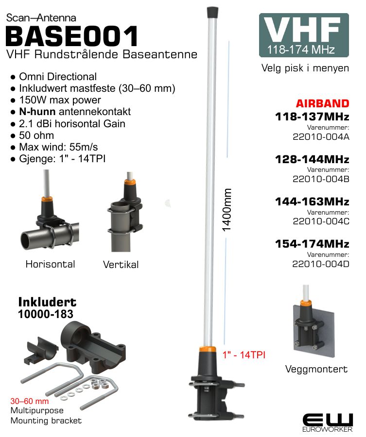 Scan Antenna BASE001 - VHF Rundstrålende Baseantenne (2,1 dBi gain)
