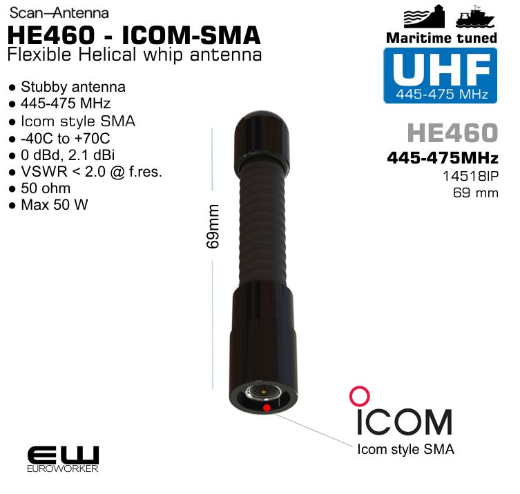 Scan Antenna HE460 Stubby for ICOM-SMA
