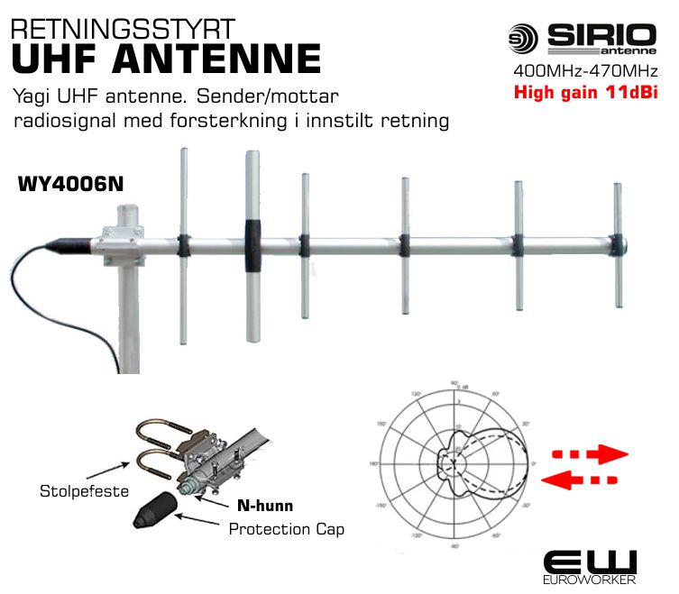 - Retningsstyrt UHF antenne som sender og mottar radiosignaler i en bestemt retning