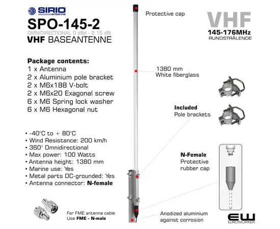Sirio SPO-145-2 VHF Baseantenne Rundstrålende (145-175 MHz)