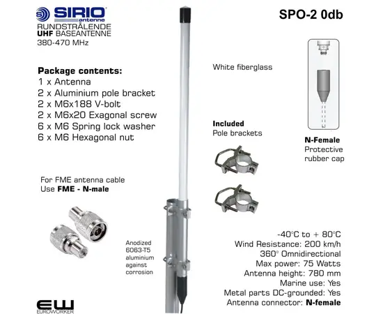 and long life to all the SPO-antennas series. - They are supplied with two strong extruded aluminium brackets and stainless steel hardware for a good