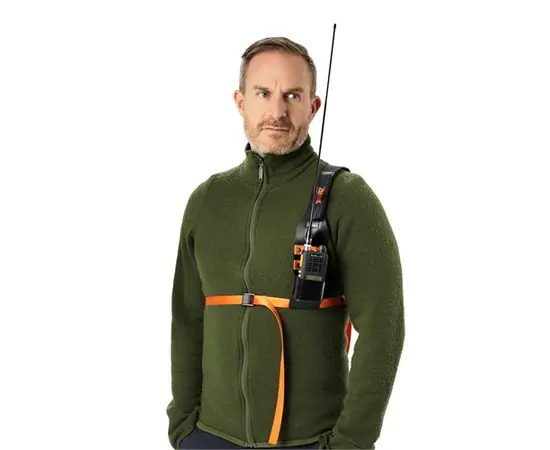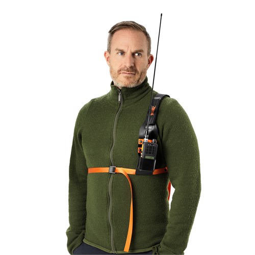 - Festes med belteklips på radioen, så sitter godt selv med kort antenne