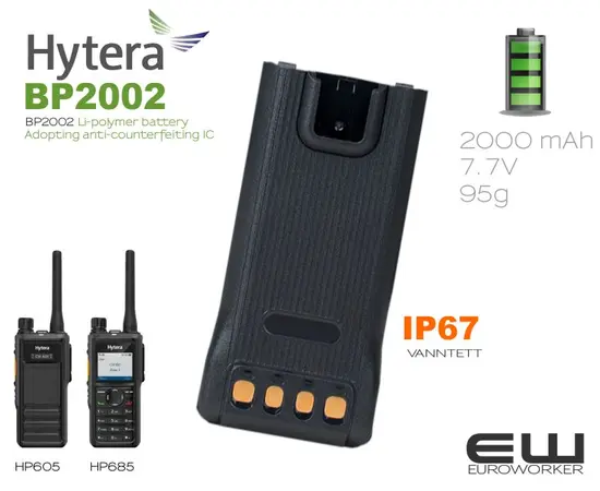 - Hytera BP2002 2000 mAh batteri (HP605, HP685)