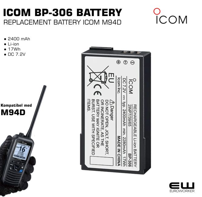 ICOM BP-306 BATTERY FOR ICOM M94D (2400 mAh)