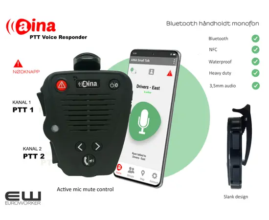 Aina PTT - Voice Responder (POC, PTT, BT, IP67)