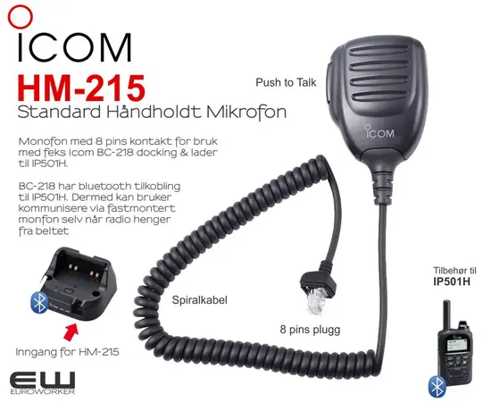 Icom HM-215 Monofon til BC-218 docking/lader til IP501H