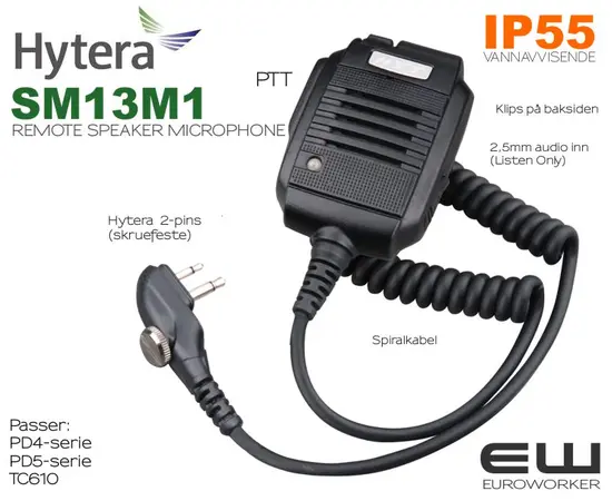 Hytera SM13M1 Monofon vannbestandig IP56 til TC610/PD505/PD565 (SM13M1)