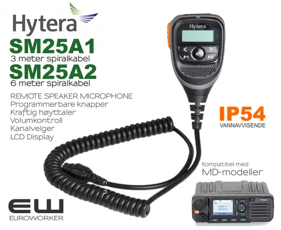 Hytera SM25A1 (3m) & SM25A2 (6m) Monofon med LCD display for MD- Mobil Radioer (IP54)