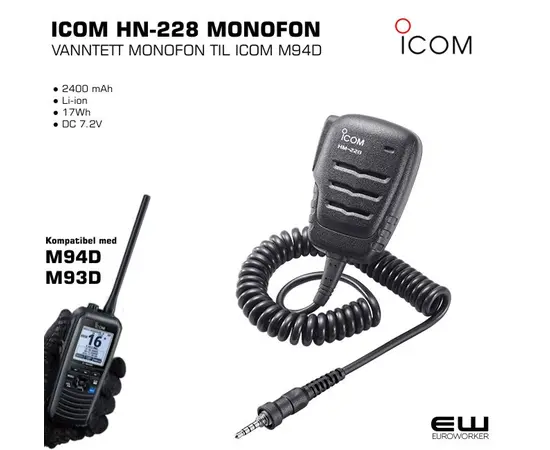 Icom HM-228 høyttalermikrofon er vanntett og egnet for Icom IC-M93D og M94D maritime radio.