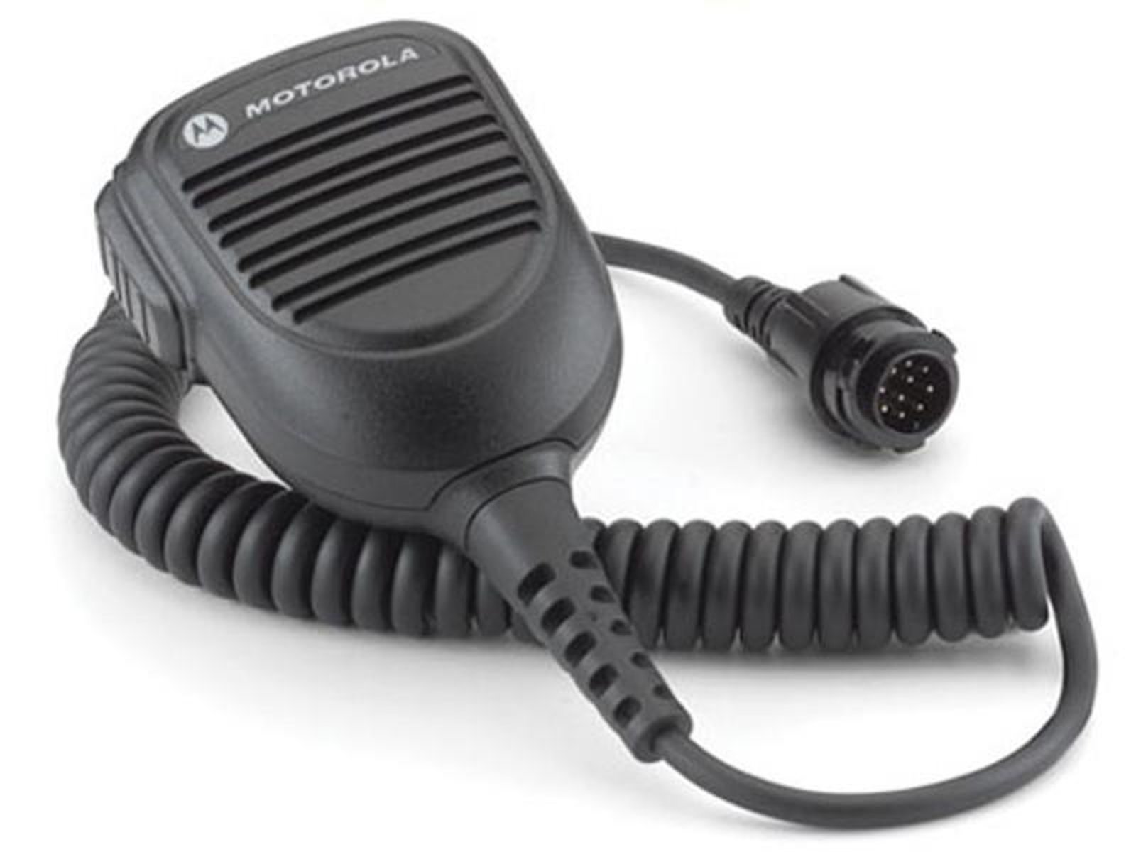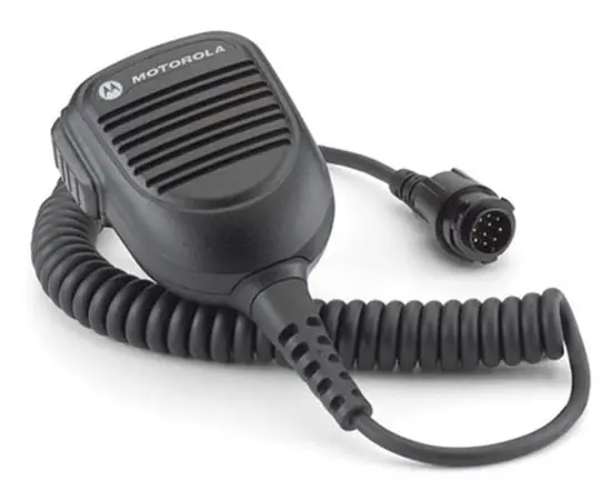 Mikrofon, PTT-knott, integrert høyttaler, volumkontroll, plugg for ekstern øreplugg, nødpinne, kveilkabel og klips.