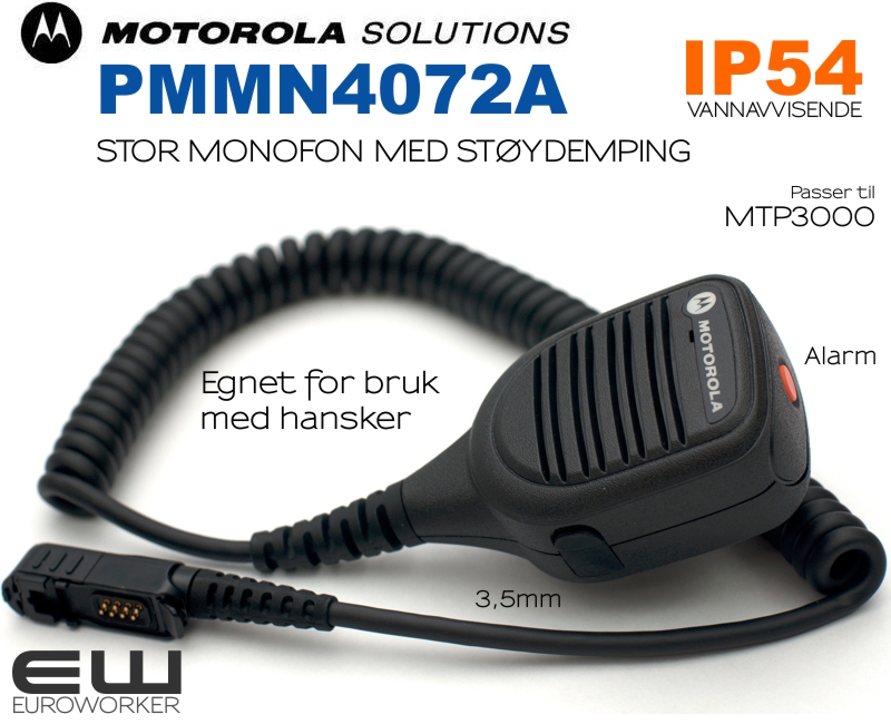 Motorola PMMN4072A Stor Monofon (IP54, 3,5mm audio, Nødknapp) (MTP3000, MTP6000)