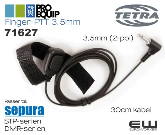 - Liten PTT med festebånd (velcrotape) for feste på finger/styre etc.