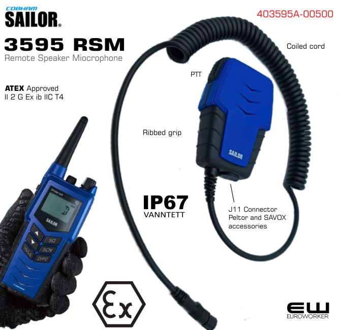 Atex sertifisert monofon for Sailor SP3500-serie Atex og non-Atex håndholdt radio