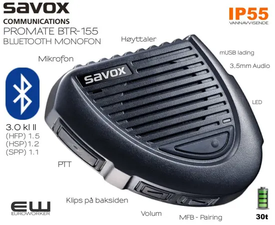 - One Savox BTR-155 Bluetooth PTT Bluetooth remote speaker microphone