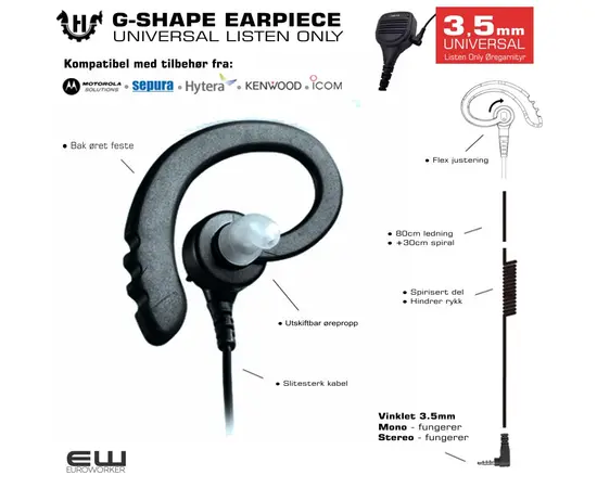 - Sitter godt på øretm skjermer godt mot støy - flex justering