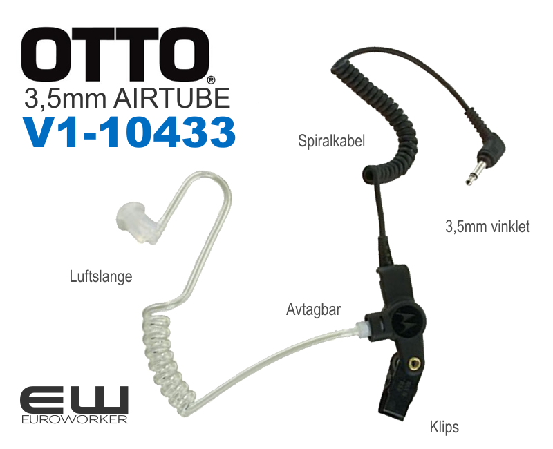 Otto V1-10433 3,Airtube earpiece vinklet (3,5mm, Listen Only)