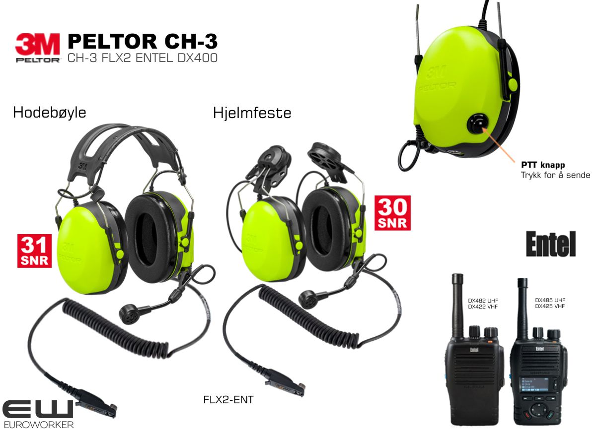 - CH-3 er den nye serien industriheadset fra Peltor med PTT-knapp og direkte kobling til Entel:
