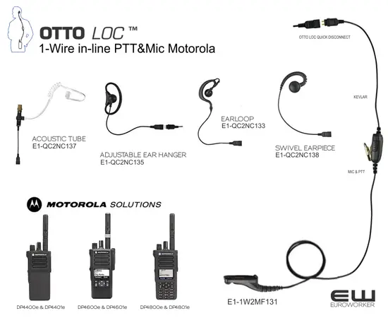 - Otto Loc 1-Wire in-line PTT&Mic med konnektor for følgende Motorola terminaler: